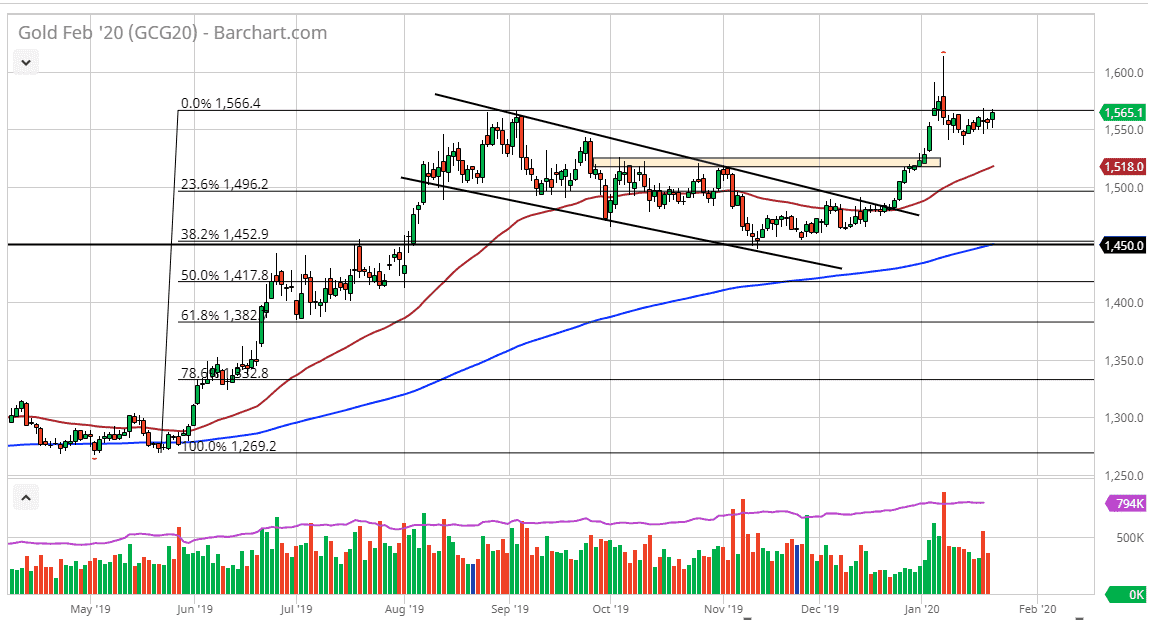 The gold markets have gone back and forth during the trading session on Thursday, as we continue to try to build up enough momentum to go higher. At this point, the $1550 level looks to be very supportive, just as the $1565 level seems to be rather resistant. With that being the case, it looks as if the market is a little bit confused at this point and is trying to figure out where to go next. That being said, we are in an uptrend, and it makes sense that we continue to do so.