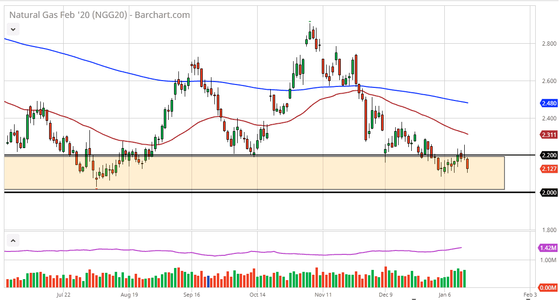 Because of this, and the fact that temperatures remain relatively elevated in the United States, I don’t trust rallies at this point, and it’s obvious that the market has had a horrible winter. Furthermore, if the market is likely to sell off, then I think it’s easier to simply wait for rallies that you can sell into. What I’m hoping for is some type of extremely bullish inventory figure that shoots this market straight up in the air. I am more than willing to sell into that because it is going to take several bullish inventory figures to change the overall attitude of the market. This is a market that could get a significant bounce sooner or later but being patient enough to take advantage of that spike and go in the other direction is probably the only real trade that’s going to be left between now and spring. Speaking of which, Spring is just around the corner and the oversupply of natural gas is going to continue to be a major problem. 2020 is probably going to be horrible for the natural gas markets in general.