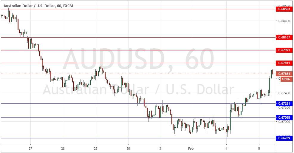 Yesterday’s signals were not triggered as there was insufficiently bearish price action at 0.6740.