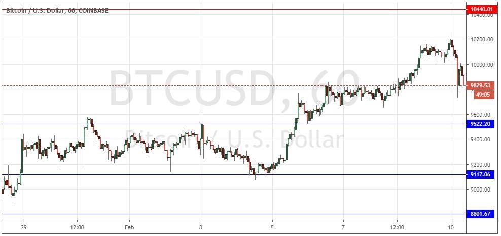 I wrote last Thursday that as long as the support at $9,522 continued to hold up, the outlook would continue to be bullish, due to the bullish trend and also to the fact that the price had room to rise to at least $10,000 before it would meet any obvious resistant area or level.