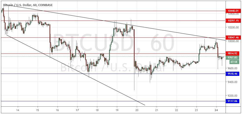 I still see a long trade at a firm bullish bounce from $9,518 as a good trading opportunity, but a short trade from the $10k area if the price gets there and reverses in the coming hours would be just as good – so I am taking no directional bias today.