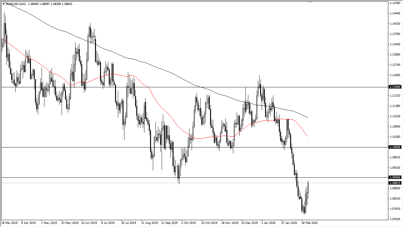 The market breaking above the 1.10 level would be something that you would have to set up and take notice of, but I think that is a pretty tall order at this point. The Italians suffering at the hands of the coronavirus outbreak certainly is not helping the situation right along with the German economy possibly heading into a recession. The question now is whether or not the US economy will follow right along with it? So far, it does not look like it’s going to happen, but we have to keep that in mind, and we do have to recognize that anything along the lines of an explosive candle above the 1.10 level is something that would dictate that we need to go much higher. I think at this point though, the Euro is simply getting a bit of a relief rally and therefore it should be treated as such. You should be patient enough to sell at higher levels as they offer value. I will be making trading decisions based upon bearish daily candlestick, which of course we have not seen