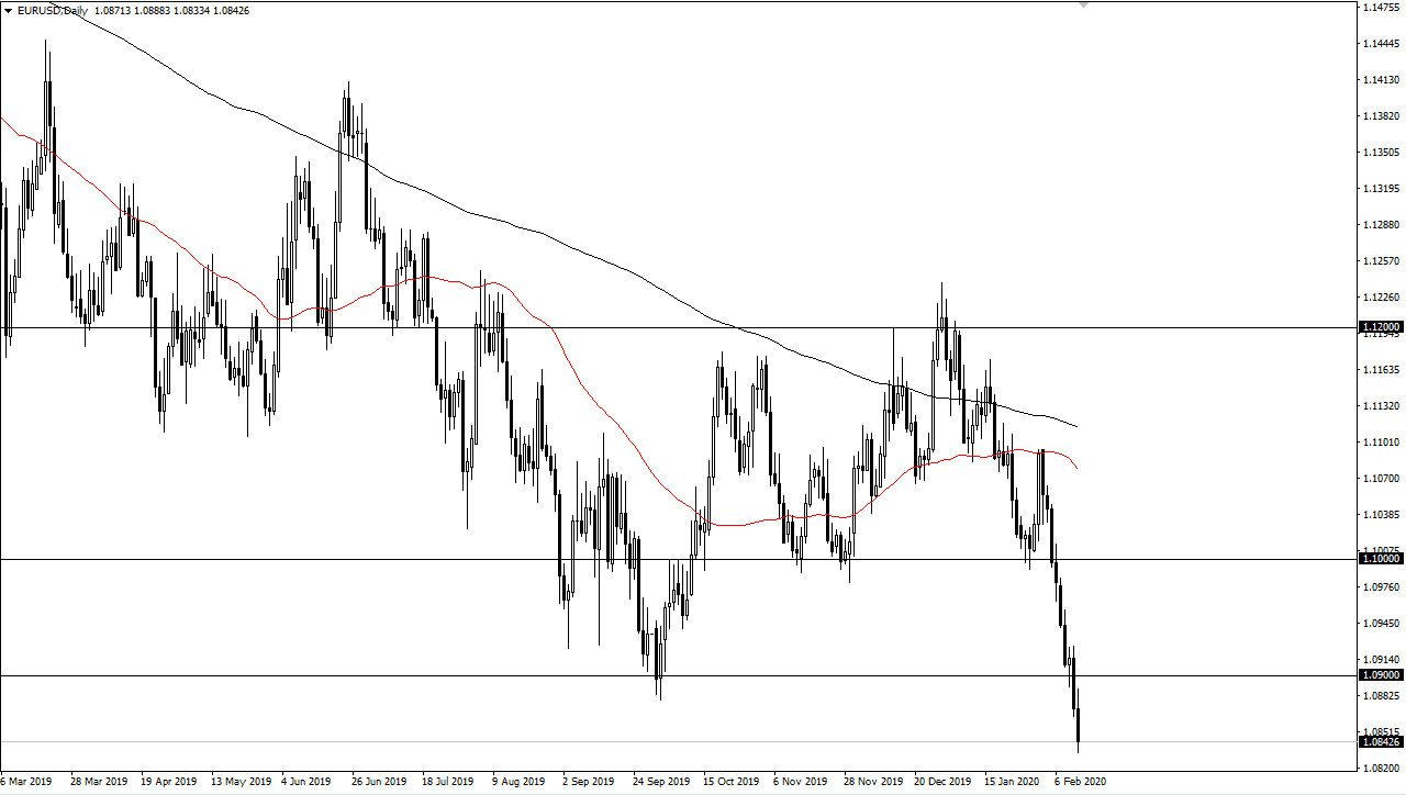 After that, a lot of money is flowing into the S&P 500 and other US indices as the US companies seem to be looked at as a bit of a safety play when it comes to the equity markets, especially in relation to places like Europe. The 1.09 level being broken earlier this week was a very negative candlestick, and when I look at the longer-term charts, I believe that we will go looking towards the gap underneath at the 1.00750 level, and at this point that gap looks to be filled rather soon. That being said though, I think that it’s only a matter of time before we get some type of rally that we can sell into, especially near the 1.09 level, and again at the 1.10 level after that.