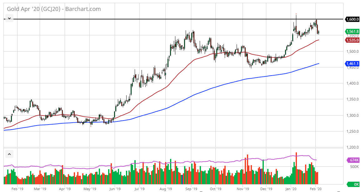 Gold has been bought not only due to the coronavirus ripping through Asia, but we also have the plenty of loose economic policy coming out of central banks around the world that should continue to have gold rising longer term. This is especially true in places like the European Central Bank and the Federal Reserve, two of the most important central banks of the world. As long as they remain extraordinarily loose with their monetary policy, it makes sense that gold should continue to gain based upon the idea fiat currencies falling, and plenty of economic headwinds at the same time. Again though, it’s about building a core position in adding slowly, not jumping in with both feet immediately. A certain amount of patience will be needed, but we are most certainly in an uptrend and that has not changed.