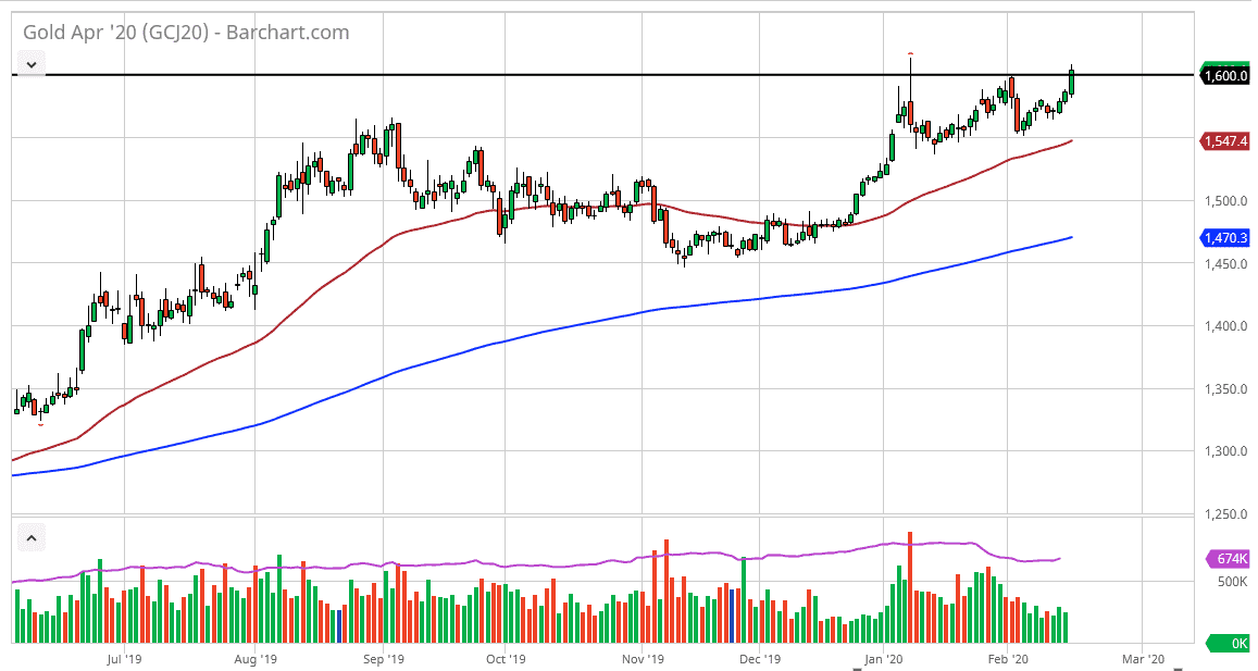 Gold markets rallied a bit during the trading session on Tuesday, breaking above the $1600 level. This is a market that has been bullish more than once, and we have in fact even rallied after every pull back for some time. Breaking above the $1600 level was the “first shot across the bow” to the sellers, and it clearly has sent a message. If the market can break above the top of the candlestick, it’s likely that we will continue to reach towards the highs that the market recently made, and then continue to go much higher than that. Ultimately, I do believe that gold goes all the way to the $1800 level, based upon longer-term trend work that I have gone over previously.