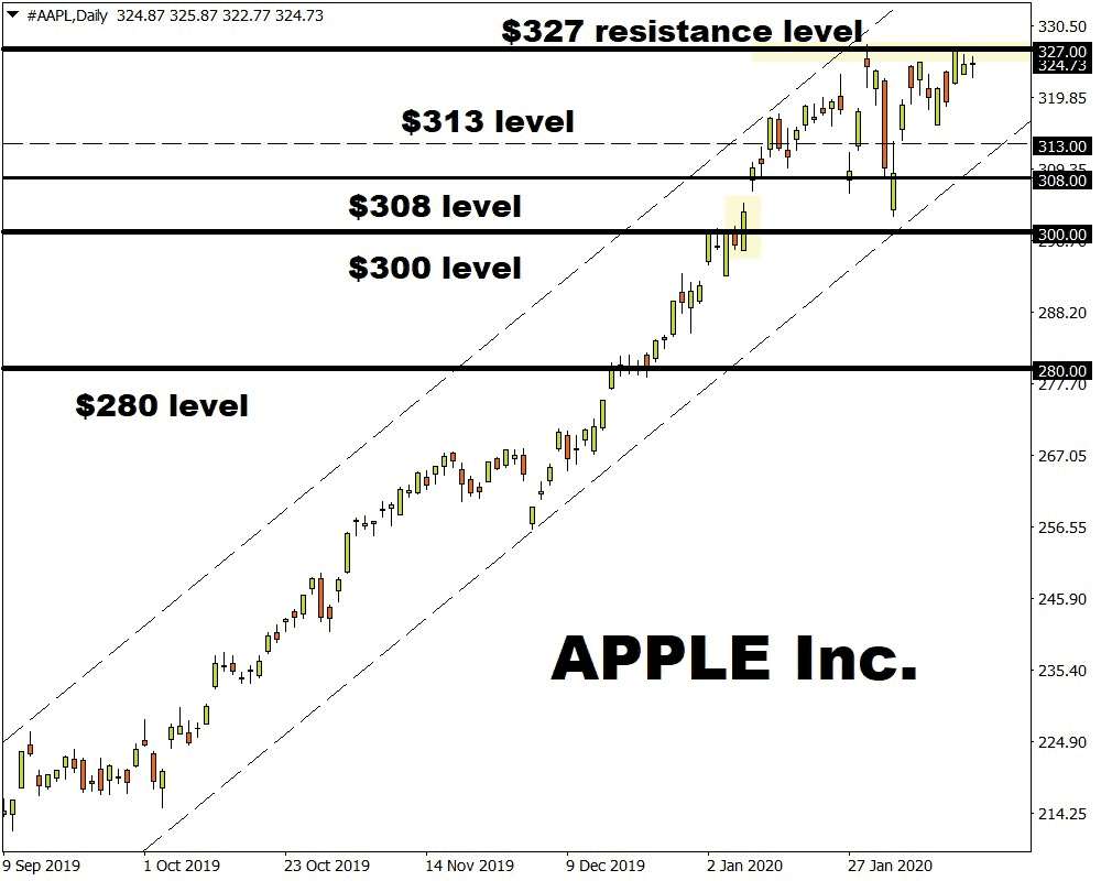 Although it would be a surprise for Apple shares to fall below $300 given the resilience and popularity of its range of products, a hypothetical fall below $300 opens the discussion that Apple shares can fall as low as $280 for the first time since December 23 2019.