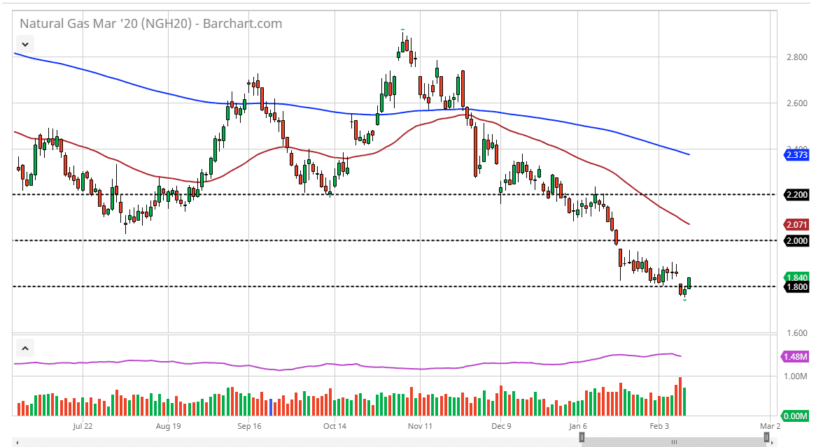 Natural Gas markets rallied significantly during the trading session on Wednesday, breaking well above the $1.80 level. However, there is the top of the gap that has yet to be filled at the $1.86 level and I believe it’s an area where we will find more selling pressure. Even if we break above there, the trend is most certainly to the downside so it’s almost impossible to imagine buying this market right now. At this point, if the market was to clear the $1.86 level, I would start looking at the $1.90 level as a place to start selling as well.