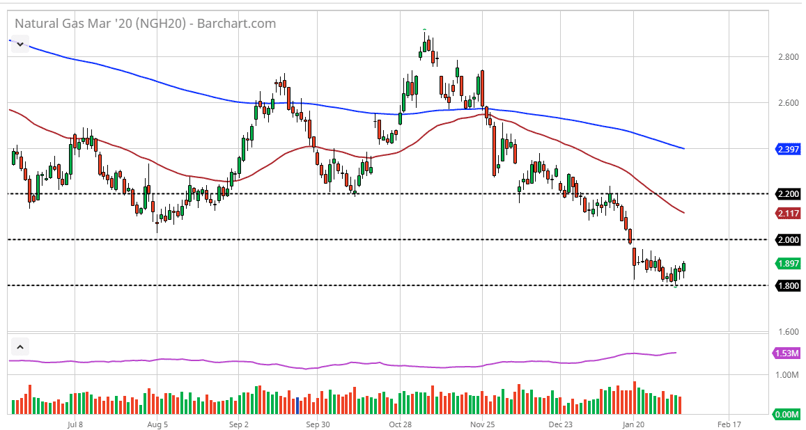 In other words, this is a market that you simply fade the rallies going forward on short-term charts, but I’m not looking for huge moves one way or the other due to the fact that the market continues to chop back and forth. The $1.80 level underneath is massive support, but if we were to break down below there it’s likely that the natural gas markets will go looking towards the $1.60 level. Rallies at this point simply offer opportunities to start shorting as the trend is very much ensconced, and quite frankly the market should offer plenty of opportunities to get involved.
