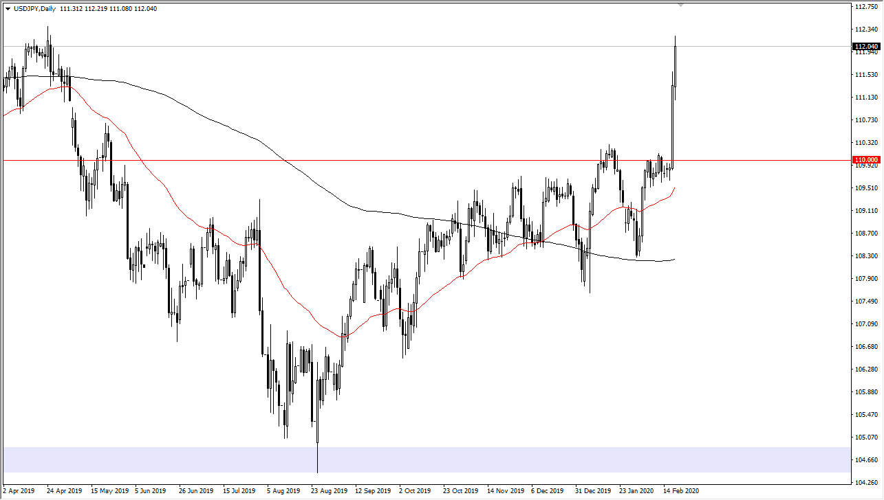 Part of what has made this market so bullish is the fact that it involves the US dollar, and then of course is the most favored currency in the world right now. The greenback offer safety as well, but as money flows into the US stock markets, it makes quite a bit of sense that the US dollar has to strengthen. This could be thought of as a sign of money flowing out of Asia and into New York, as fears of the coronavirus continue to cause major issues for the idea of Asian growth in general. All of that being equal, I still believe that a pullback makes quite a bit of sense because people won’t want to be short of the Japanese yen going into the weekend. To the upside, I see the ¥114 level as a major target, followed by the ¥115 level, which is the top of the longer-term consolidation. In fact, I have been waiting for some type of impulsive candlestick at what I thought was “fair value” in the larger consolidation, the ¥110 level. Now that we have got an impulsive break out to the upside it tells me there is plenty of momentum.