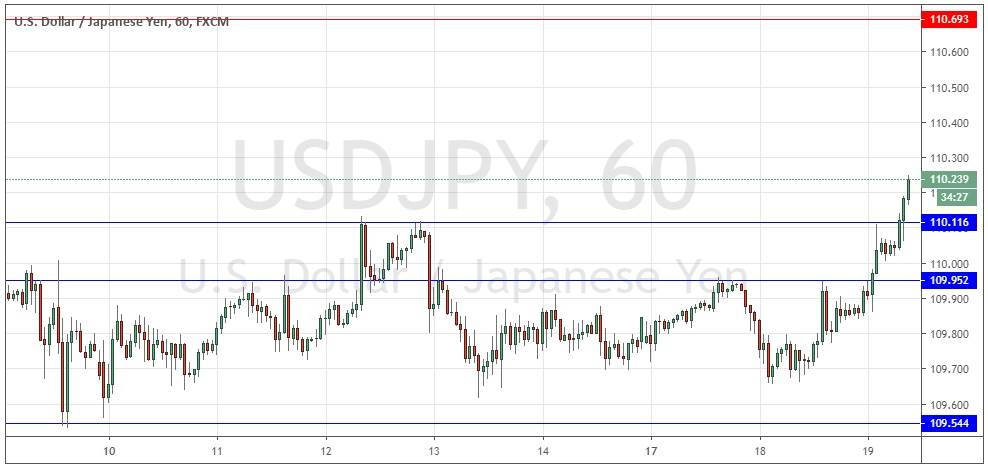 I will take a bullish bias later if we get a New York close above 110.18, but I note there will be an FOMC meeting minutes release later in the New York session and the price of this currency pair is likely to be sensitive to any surprise there.