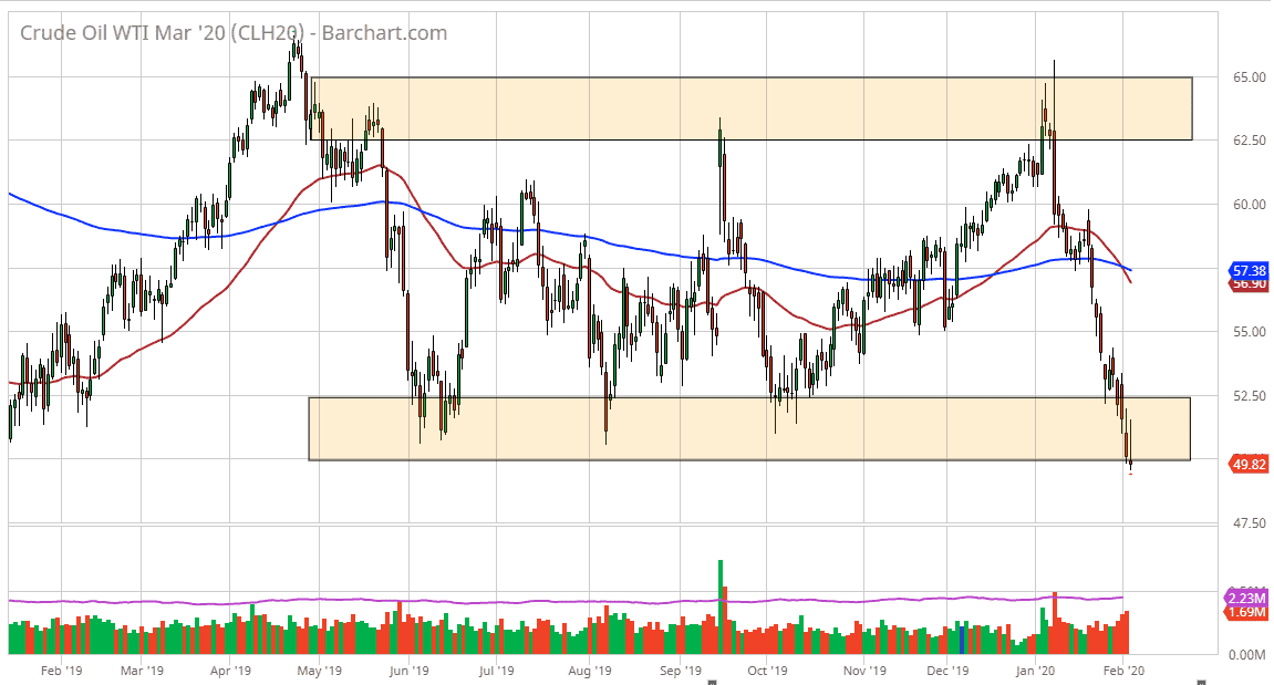 That being said, it is difficult to imagine a scenario where the oil markets take off significantly without some type of Chinese recovery, which of course is going to take some time due to the fact that the coronavirus is still finding new victims. With that, it’s more than likely going to be a scenario where rallies are sold into, but we do have technical levels that we should be watching. Furthermore, it should also be noted that oil was already starting to fall, mainly based upon the fact that the Americans and Iranians didn’t escalate tensions. While that seems like an entire lifetime ago, it was just last month.