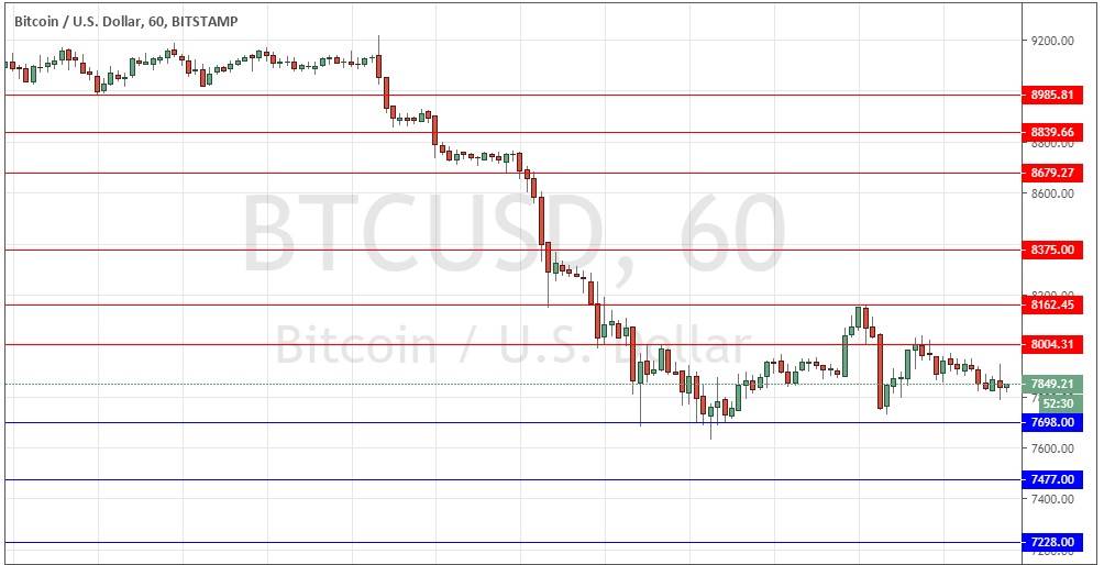 Yesterday’s signals were not triggered, as there was no bearish price action when the resistance level at $8,000 was first reached.
