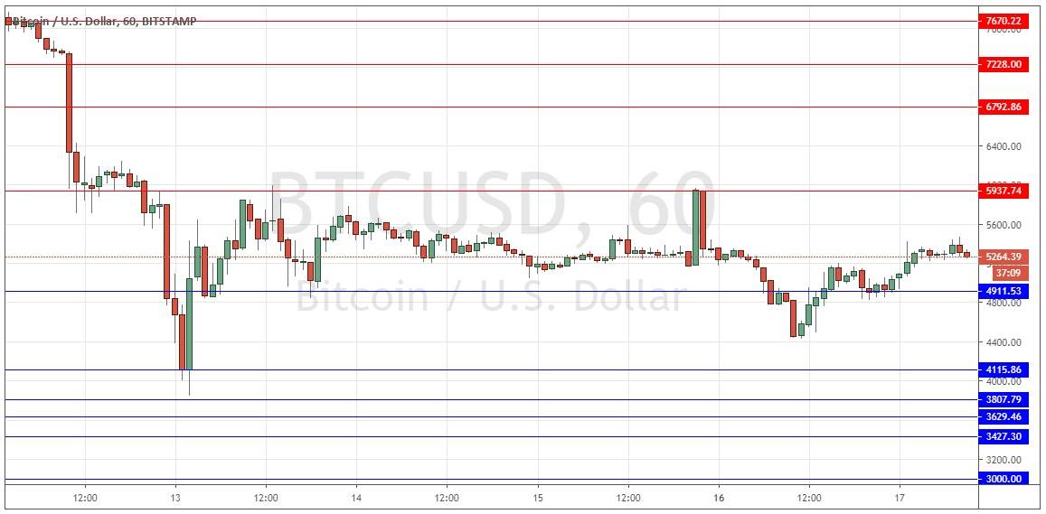 I would take a bearish bias from a bearish reversal following a pullback to the resistance identified at $5,937 which looks like it will act as a very solid resistance level if reached soon. The coronavirus crisis will not end soon and it hard to se risk sentiment improving enough to substantially raise the price of Bitcoin while it lasts.