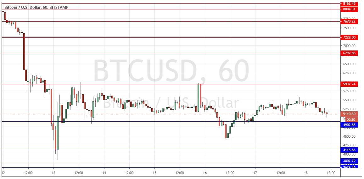 I wrote yesterday that I would take a bearish bias from a bearish reversal following a pullback to the resistance identified at $5,937 which looked like it would act as a very solid resistance level if reached soon. The coronavirus crisis will not end soon and it hard to se risk sentiment improving enough to substantially raise the price of Bitcoin while it lasts.