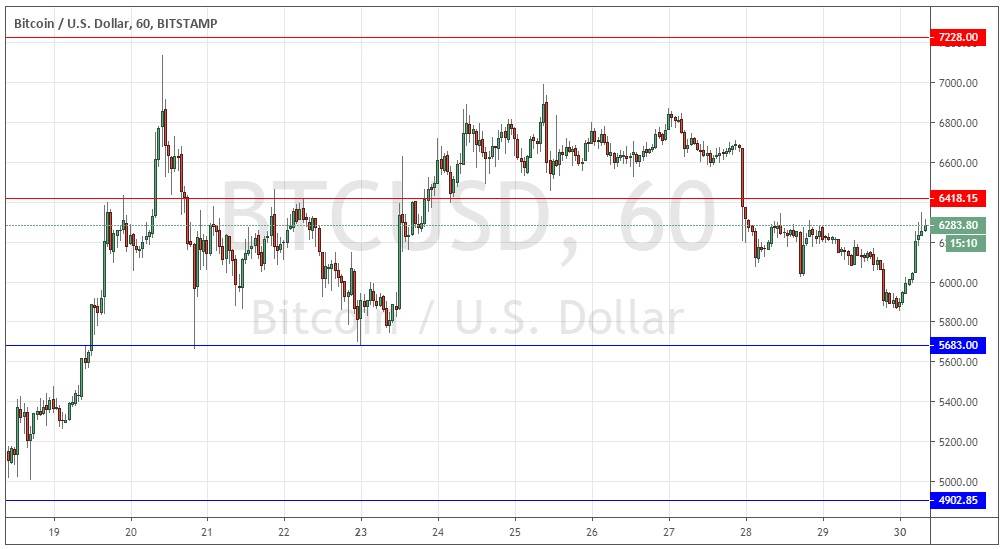 I wrote yesterday that a neutral approach should continue here today with no directional bias – so I would take either a long trade at a bounce from $6,418 or a short trade from a bearish reversal at $7,228. I was right about the general flatness of the price, although neither of these levels were hit. The price is still swinging in quite wide swings, but ultimately without any direction. We just have a wide consolidation and few key support or resistance levels, so the price still has room to move around.