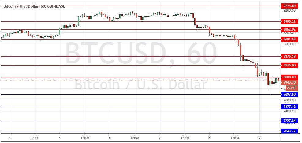 Last Thursday’s signals were not triggered, as there was no bearish price action when the resistance level identified at $8,995 was reached.
