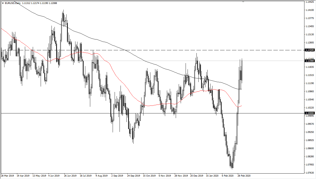 The Euro has rallied significantly during the trading session on Thursday, showing signs of even more strength as the market is likely to go looking towards 1.1250 level based upon the fact that the Federal Reserve is likely to continue cutting interest rates going forward. The Fed Funds Rate Futures market is pricing in another 50 basis points as far as a cut is concerned, so market participants are in fact going to push the Federal Reserve into cutting rates again. After all, the Federal Reserve has proven itself to be a slave to Wall Street, and as a result it’s likely that the Federal Reserve will in fact do the cutting that everybody is anticipating.