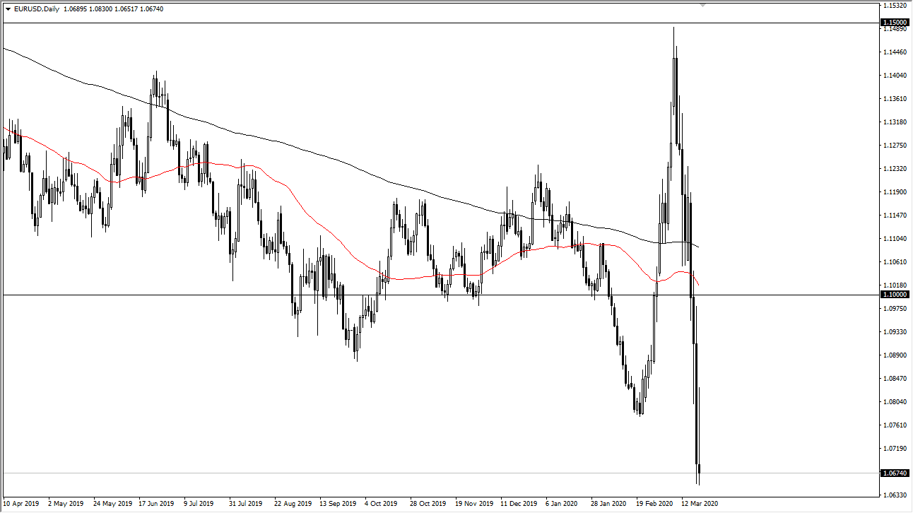 That being said, when you look at the monthly chart you can see that the 1.05 level is significant support. That is where I do believe we are going, and at this point it’s obvious that rallies are going to be sold into. With the European Union under lockdown essentially, it’s difficult to imagine a scenario where the Euro suddenly takes off. Quite frankly, the markets are going to have to see some type of problem in the United States that outdoes the issues in the European Union to change things. Because of this, I think that we will continue to see opportunities on shorter-term charts that show signs of weakness. I believe that the 1.08 level will continue to be resistance, just as the 1.10 level will be.