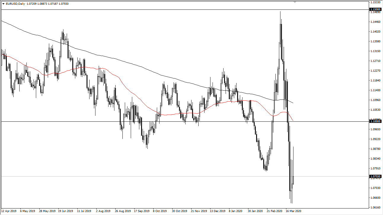 The Federal Reserve has thrown a ton of liquidity into the marketplace and is likely to bail out just about anybody they can. Furthermore, the US Congress is looking very likely to throw a ton of money at the economy as well, so one would have to think that the US dollar may lose a little bit of its luster. In fact, one would think that the Euro would be able to capitalize upon it. However, it has not and that tells you just how weak the Euro is in general. Because of this, I am still looking to fade rallies, at least until we get a daily close above the 1.10 level which could change my attitude a little bit. To the downside, if we break down below the lows, then we will try to take out 1.05 and then move on down to the parity level. All economies around the world are grinding to a halt but the European Union was a special kind of basket case to begin with, so this can only be exacerbated at this point in time. Adding more to the lack of confidence is the fact that short selling has been banned in several large European stock markets now.