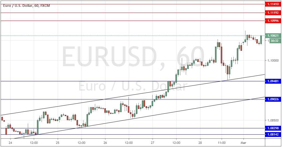 Last Thursday’s signals produced a losing short trade from the pin candlestick on the hourly chart which rejected the resistance level at 1.0993.