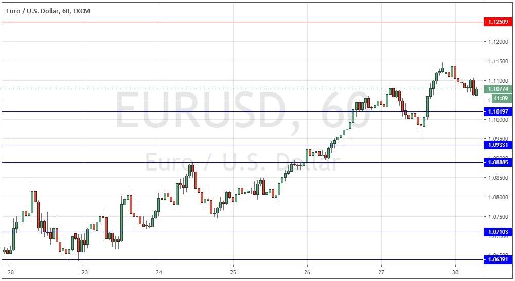 This was a good call insofar as the price breaking above the 1.0960 level was a bullish sign. We have seen the price continue to rise from there and get well established above the big round number at 1.1000. The Euro continues to be one of the stronger currencies, while the U.S. Dollar has continued to decline or at least stabilize over recent days.