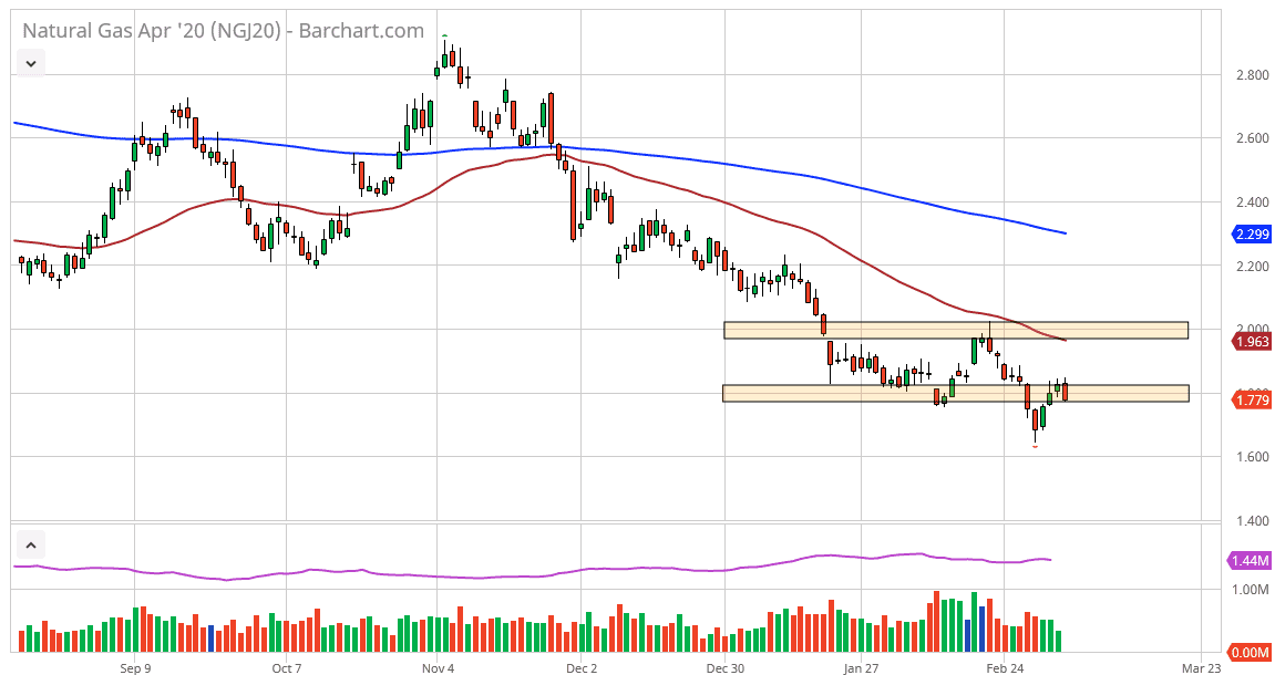 At this point, it does look like we are ready to rollover in this market yet again as demand for natural gas will naturally decline this time of year. Furthermore, the jobs number is rather bleak it could suggest that industrial demand will be dropping also. The one thing that has been a bright spot in the US economy has been the employment situation, and as long as that remain strong it’s very likely that the natural gas markets will continue to see some demand, but with the temperatures rising due to the winter ending, it makes sense that the market will continue to see less and less buyers.