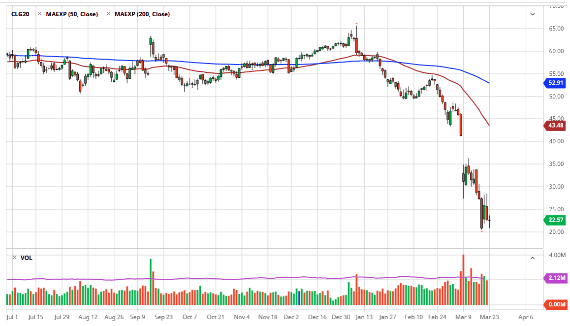 If the market turned around a break down below the $20.00 level, then it’s very possible that the market goes looking towards the $17.50 level, and then eventually the $15.00 level. If we start to see massive slowdowns in the economy like people are expecting, sometime during the month of April we will have filled most of the storage of the world and oil simply won’t be able to work off the inventory. At this point, I believe that rallies are to be sold into, starting at the $25 level, and again at the $29 level, followed by the $34 level. Ultimately, I think fading rallies will continue to be the best way to go until we get some type of fundamental announcement that suggests that the price war is over and of course demand will pick up.
