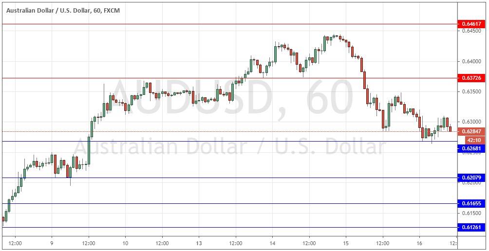 Last Tuesday’s signals were not triggered, as there was no bullish price action when the support level identified at 0.6373 was hit later that day.