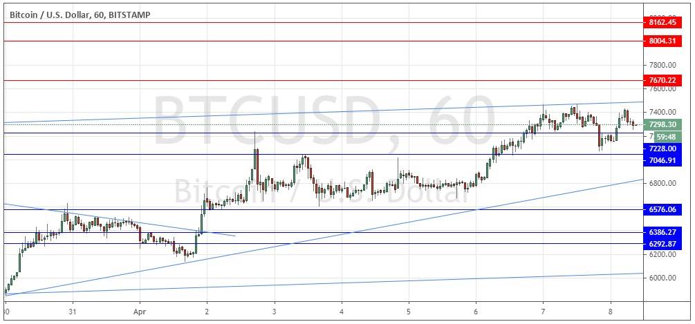 Yesterday’s signals were not triggered as there was no bullish price action when the support level at $7,228 was first reached.