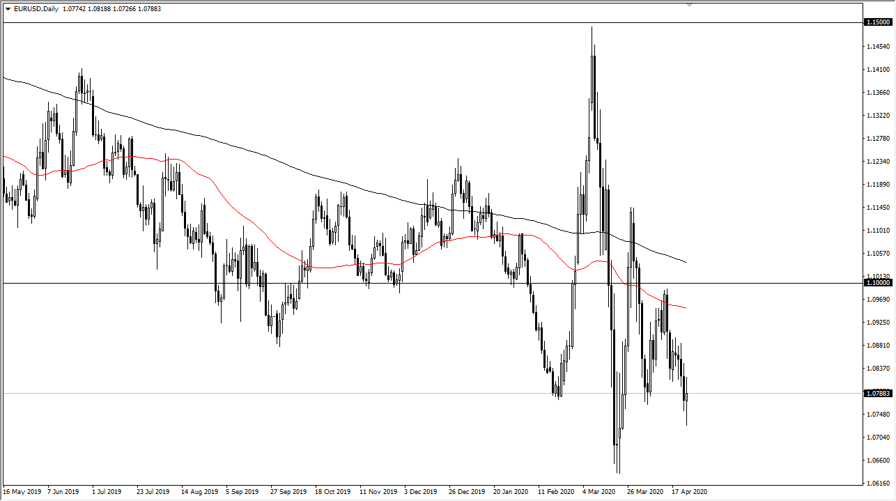 Because of this, when I look at the candlestick, I recognize that this is a bit of neutrality, but I also recognize that the market had made a lower low, and it suggests that we could continue to go much lower. The 1.0650 level would be a target over the longer term but as usual this pair is going to be very noisy and exceedingly difficult to hang onto. Short-term traders will continue to fade short-term rallies that show signs of exhaustion. I do not have any interest in trying to hang onto a trade for a bigger move, because quite frankly this pair very rarely offers that opportunity. Yes, we have recently seen rather large candlesticks, but that was the first time in a couple of years.