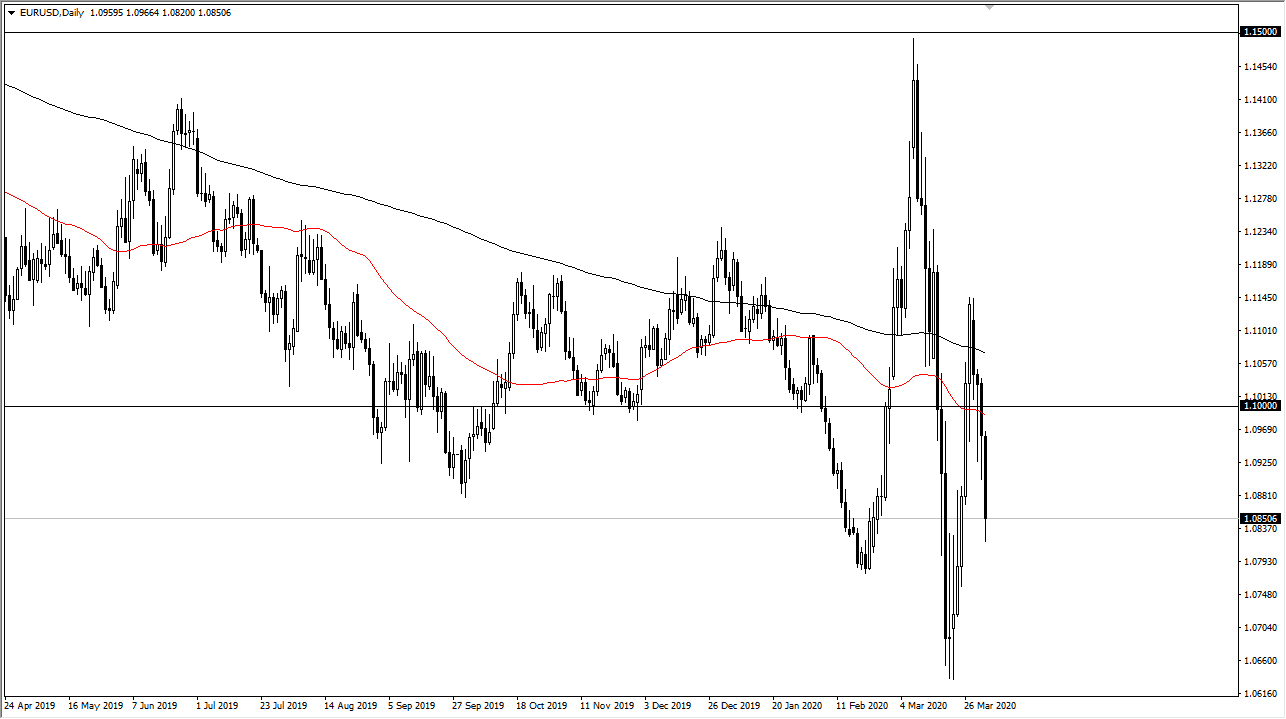 The market broke rather hard during the trading session but with the initial jobless claims in the United States showing a gain of over 6 million, this shows just how troublesome the global economy is going to be. After all, the coronavirus effects on the global economy have been much worse than anticipated. Ultimately, this means that there is going to be no growth to be had and what we have seen is a market that was jumping into treasuries rather quickly, which of course require US dollars. Furthermore, the European Union was a bit of a mess before all of this started so there’s no reason to think that it would be better now.