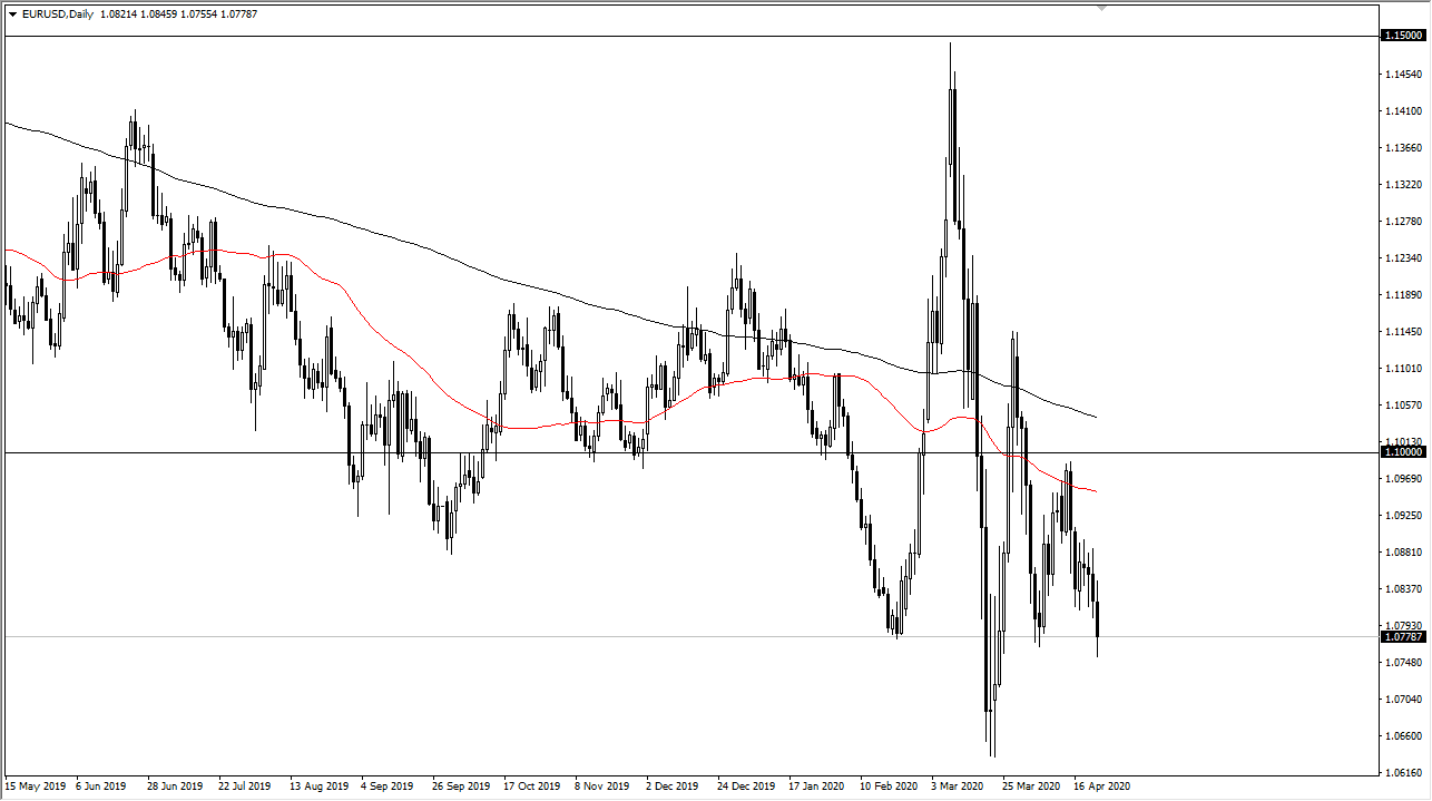 Rallies at this point will continue to see a lot of resistance near the 1.09 level, which at one point during the day look like it was going to be seriously threatened. However, as Wall Street closed out for the day, we started to see a lot of weakness out there, meaning that people were throwing money towards the US Treasury markets which yields of course fell. That is a very bullish sign for the US dollar as people continue to worry about almost everything under the sun, and that of course has a major ramification.