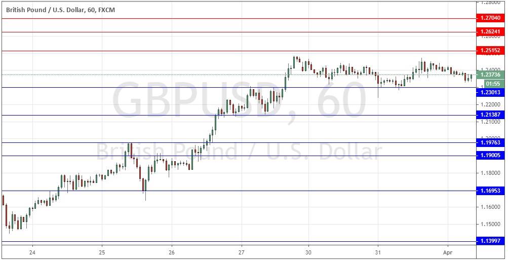 I wrote yesterday that as it was notable that the British Pound was relatively firm, I was looking for a long trade from a more decisive bullish bounce off 1.2300 if we got it. The price did not reach that level yesterday, but I was on the right track, as the price has continued to look quite bullish and hold up above that level even though the USD has strengthened.