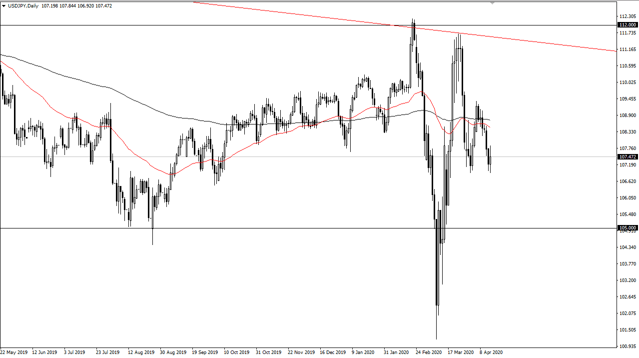 The US dollar has initially pulled back a bit to kick off the trading session on Wednesday, reaching towards the ¥107 level. At this point, the ¥107 level looks to be somewhat supportive, but at the same time we have seen extreme amounts of volatility in the currency pair as there has been so much in the way of noise when it comes to the currency pair. I think overall if we can break down below the ¥107 level it will open up the door to the ¥105 level, just as I suggested yesterday. On the other hand, if we turn around and rally from here, I suspect that the ¥109 level above will be the initial target. The market does look like it’s trying to hold in this overall 200 point range, and you can think of it more or less as a rectangle, meaning that you should get the same move as the height of the consolidation. In other words, we break above the ¥109 level, then it’s likely that we go to the ¥111 level.