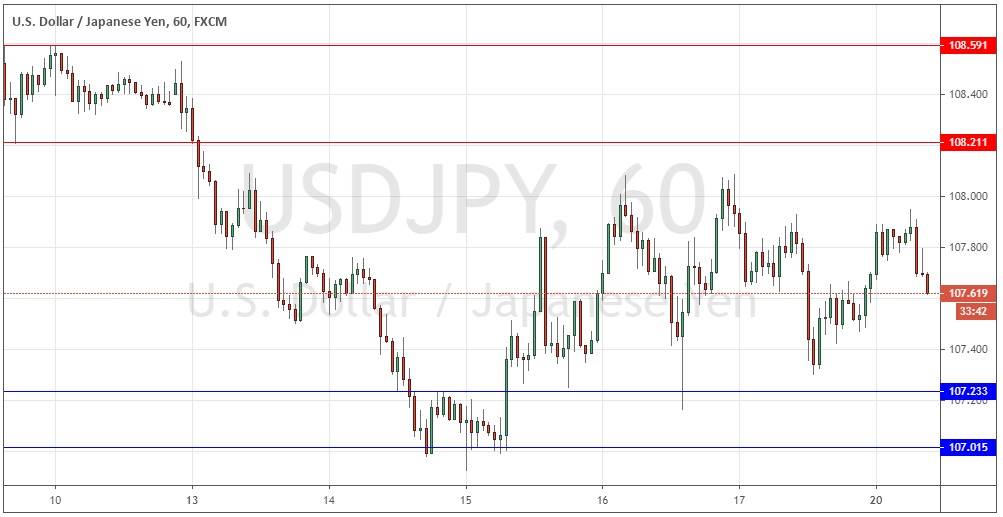 Last Thursday’s signals produced a profitable long trade from the strong bullish pin candlestick which rejected the support level at 107.23.