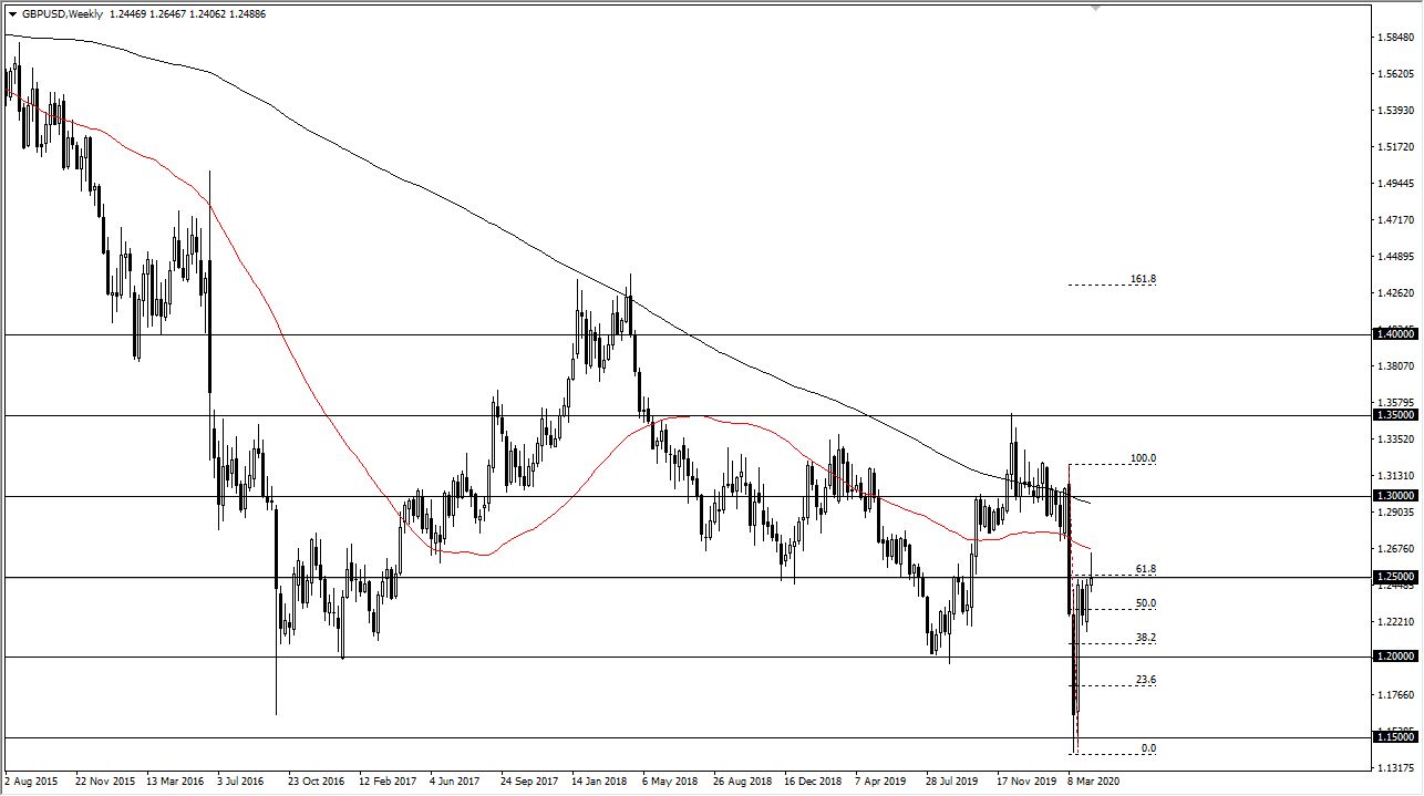 The British pound initially shot higher during the week, but by the time we closed out on Friday we did up forming a bit of a shooting star. This shows that the 1.25 level is of course offering quite a bit of resistance, and I do think that it’s only a matter of time before we break down. However, you if we break the high of the week then it’s very likely we go looking towards 1.2750 level above. Ultimately, if we break down below the weekly candlestick from last week, then the market is likely to go looking towards 1.2250 level, and then possibly the 1.20 level after that.