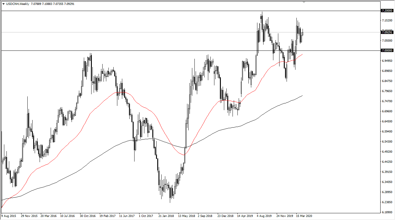The US dollar gained against the Chinese Yuan during the week but did give back about half the gains. With this looks like to me is a rocket that is trying to grind its way higher but there is obviously a significant amount of resistance above that could continue to cause some issues. While I do not necessarily trade this pair very often, what I do use it for is a risk sentiment indicator. The higher it goes, the less risk appetite there is. Currently, it looks like there are a lot of issues under the surface and we may see some of the riskier assets out there suffer a bit.