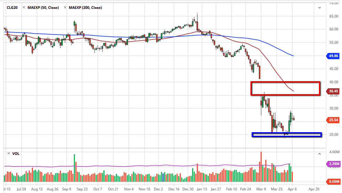 There seems to be a bit of uncertainty as to whether or not the United States and Canada are going to get involved, so if that’s the case we very well could see a lack of efficacy to these cuts. Granted, Saudi Arabia itself and to a lesser extent Russia, are going to be enough to get rid of the oversupply of crude oil that we have right now. After all, the oversupply in crude oil has been going on for some time and it’s likely that it will continue going forward. Granted, the entire idea of starting to price war was to drive US shale producers out of business, and now Donald Trump is floating the idea of possibly having some type of import tariff on foreign oil.