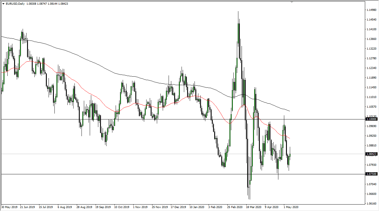 The 50 day EMA above is near the 1.09 level and sloping lower. That is an area that should cause some issues as well, so I am simply looking to fade the Euro as it rallies. The European Union continues to struggle overall, as the coronavirus has truly slammed an already soft economy. Furthermore, there is a huge and insatiable demand for US dollars out there to pay off debts, so this will continue to be a major problem for anything that is not the greenback.