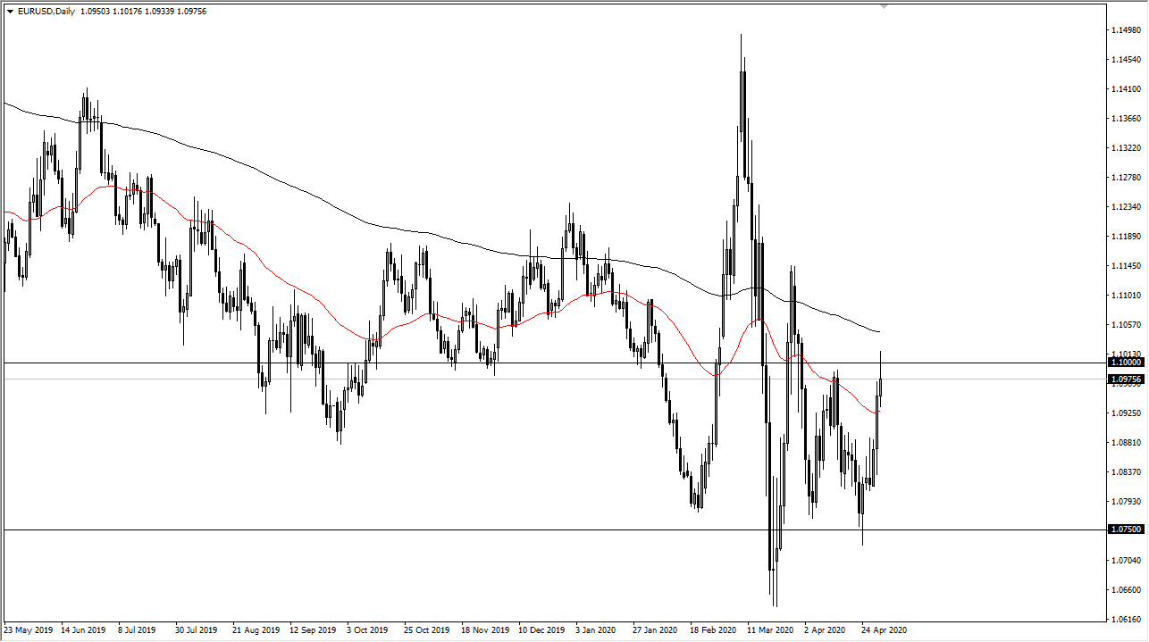 We have been in a range between roughly 1.10 and 1.0750, and although we did pierce the top of it during the day, it looks as if we could pull back into that range rather quickly. This will be especially true if we get some type of negativity of the weekend, which let us be honest here: we could. Furthermore, we get the jobs number at the end of the week so traders may start to hedge their bets between now and then as the Non-Farm Payroll announcement should be an absolute disaster.