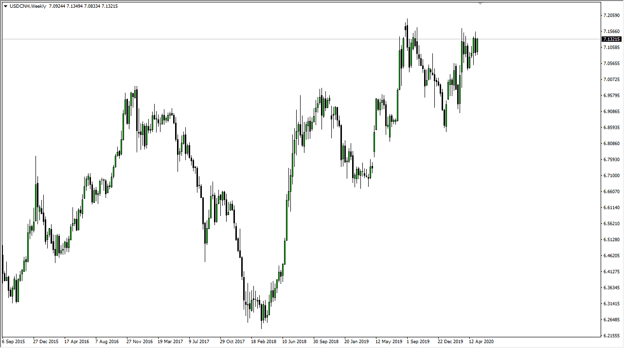 As per usual, I keep an eye on the chart as it shows me a good representation of the global risk appetite. The US dollar clearly is looking to break out against the Chinese Yuan, which is most certainly a major “risk off” type of scenario. The market will probably find support near the 7.10 level, but if it breaks above the 7.20 level, this thing could take off rather quickly. While not easily traded, this is a market that should be paid attention to.