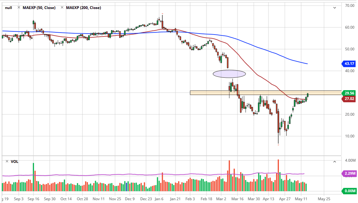 However, you should keep in mind that it seems like market participants are willing to place a lot of credence in the shutdown of US rigs, and perhaps even the production cuts coming out of the Middle East. However, it is a short-term rally at best that I think we are going to see, so the longer-term situation is something that we should be paying close attention to as a lack of demand is going to make this market bearish eventually. After all, we are not going to see the same type of momentum that we had in the past, and with the lack of business movement, it makes quite a bit of sense that the oil markets will reflect that. Ultimately, I do believe that there still money to be made on the downside, but the question is whether or not the $30 level is going to hold. If not, then we know that the gap is the next major barrier. Between now and then we can make profit. Otherwise, if we turn around a break down below the $27 level it is likely that this market rolls over completely.