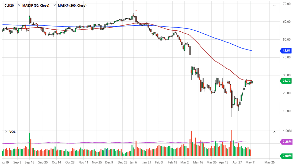 If we do break above the $30 level, then it is likely that the market could go looking towards the $42 level after that. All things being equal, the market is going to continue to be extremely negative overall, but one thing is for sure it has done much better than one would have anticipated. If we break down below the $25 level it could open up a move down to the $20 level, followed by the $17.50 level. Expect volatility regardless of what happens and with the OVX, the oil volatility index, at higher levels that was after the Great Financial Crisis, this shows you just how dangerous the oil market is going to be. With that in mind it is likely that the position size should be small as the latest headlines will throw this market back and forth. Quite frankly, the only reason this market has been quiet is that the market has become somewhat exhausted after the massive move that we had seen. The inventory figures coming out later this week could be crucial.