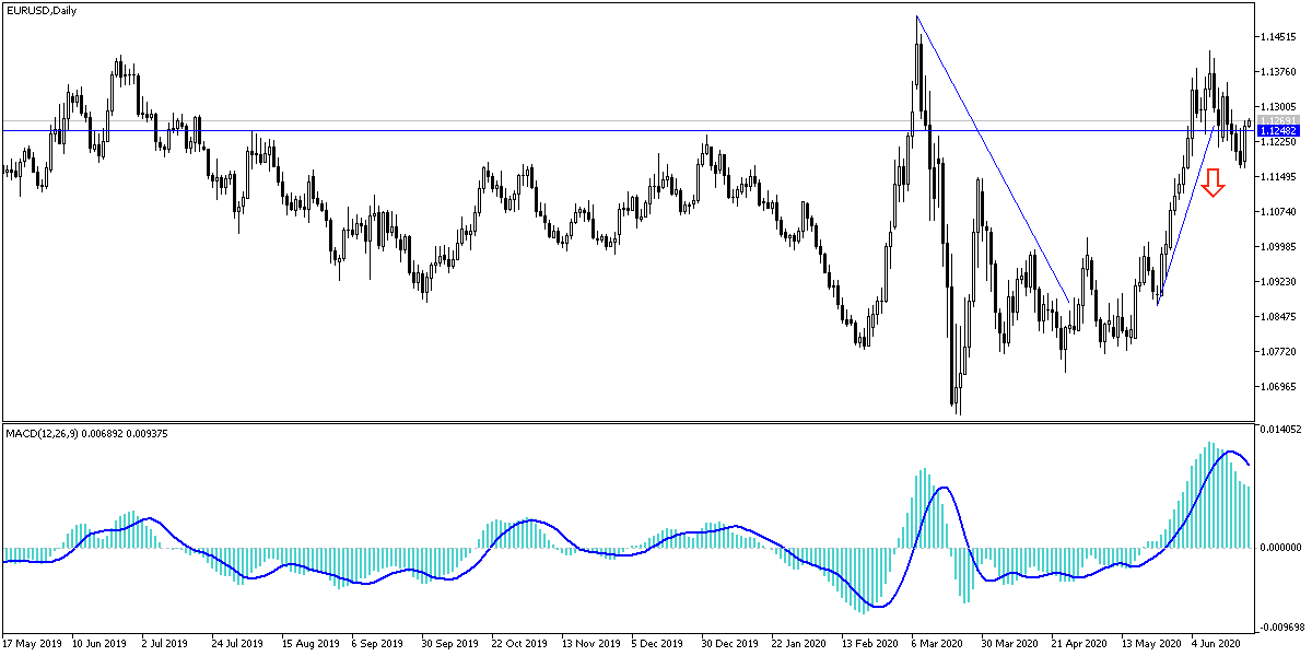 According to the technical analysis of the pair: Despite the recent EUR/USD bounce attempt, the downward pressure remains. A return to stability below the 1.1200 support will continue to support the bears controlling performance for a longer period. There will be no real chance for the bulls to regain their performance control without returning to around and above the 1.1400 resistance, and I still prefer to sell the pair from every higher level.