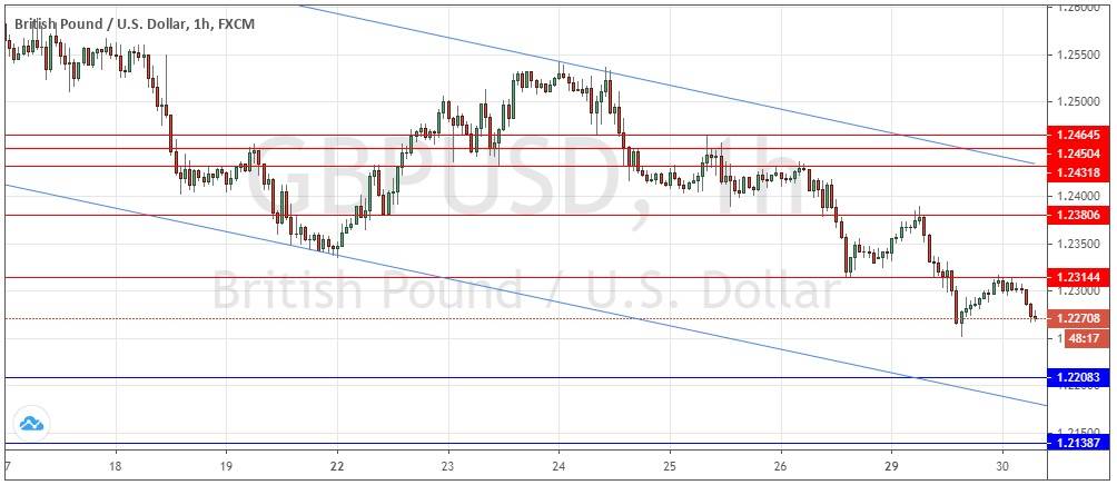 Yesterday’s signals were not triggered as there was no bullish price action when the support level at 1.2285 was reached.