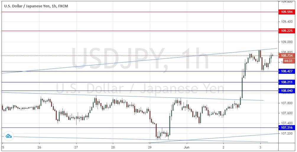 I wrote yesterday that the best approach here would be following a breakout from the range between 107.00 and 108.04. This was a great call, although I was not correct in excepting that it would not happen yesterday, as we did get a bullish breakout beyond 108.04.