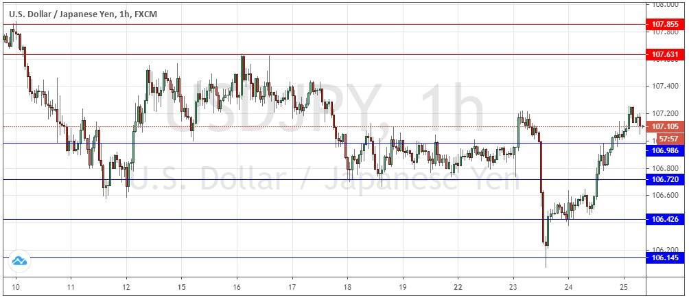 Yesterday’s signals were not triggered as there was no bearish price action when the resistance levels at 106.72 and 107.02 were first reached.