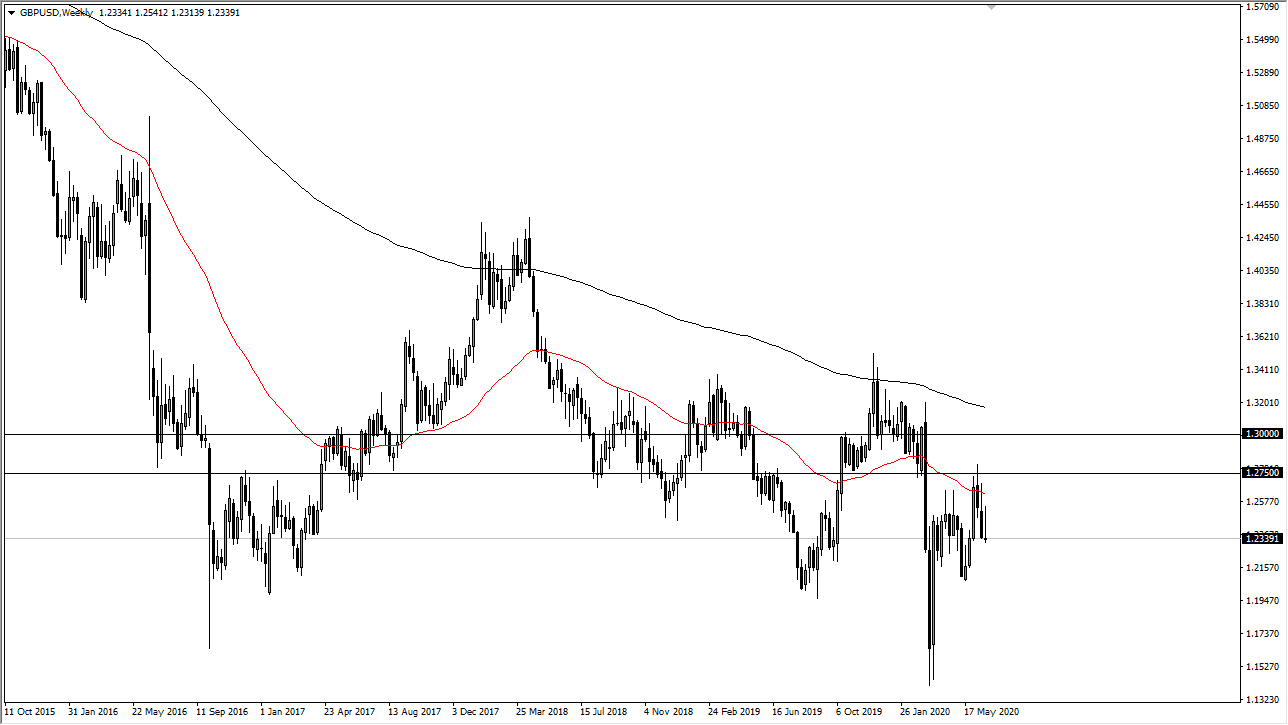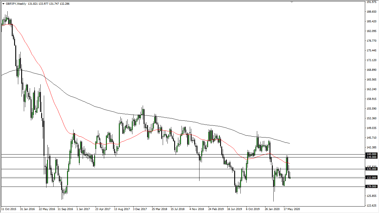 The Euro rallied significantly during the week, reaching towards the 1.1350 level before pulling back yet again. We have formed three shooting stars in a row, and it does suggest that we will continue to have a “fade to rally” type of scenario. If we break down below the bottom of the candlestick for the week, that will unleash more selling, perhaps down to the 1.10 level. It is not until we break above the 1.15 level that I would be a buyer of the Euro, as it would be a major trend change. Regardless, most of the headlines out there continue to be negative so I think it is only a matter of time before we break down.