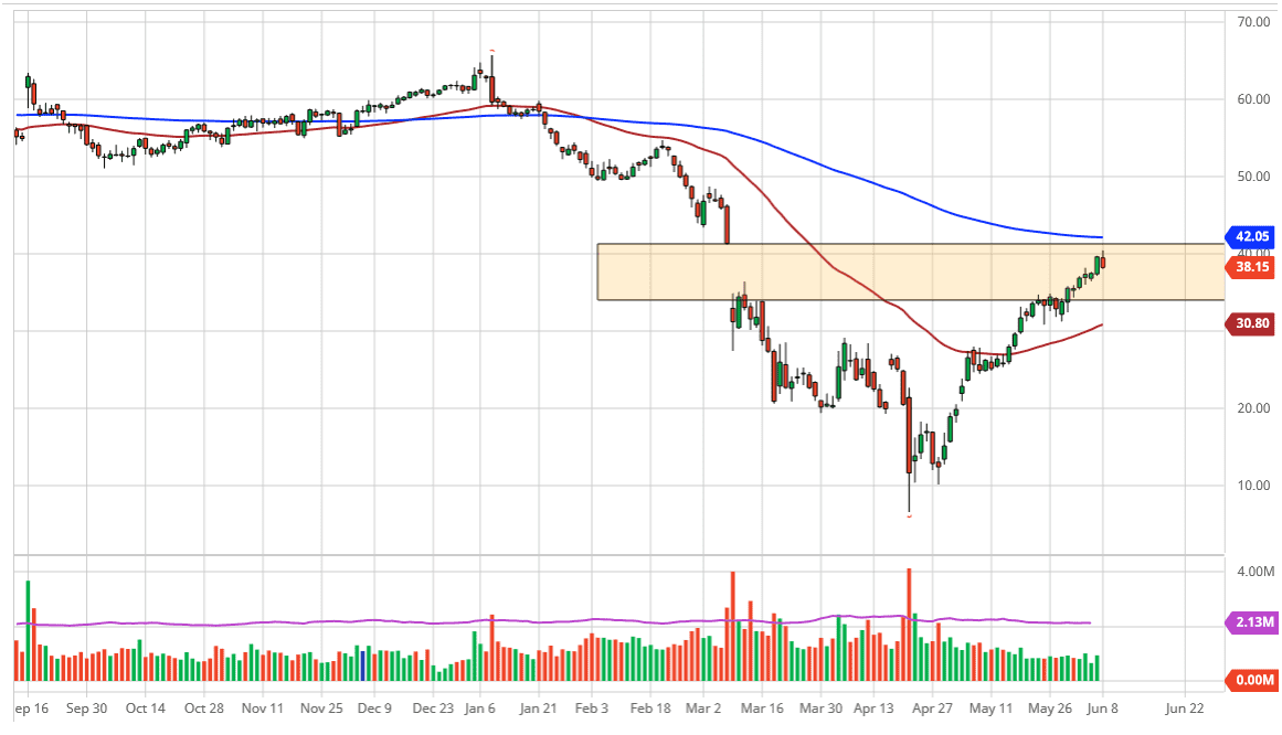Underneath, the $30 level is the absolute “floor” in the market, and we could be very well trying to form some type of range, something that this market likes to do. All things being equal, the $50 level above would be a massive bellwether for where the market was going. At this point, the market is likely to see a lot of back and forth action, because quite frankly, we have gone higher and it almost straight line. This is a lot like the stock market, overbought and has been a bit ridiculous. There have been talks about OPEC extending cuts, but you have to wonder whether or not there is going to be enough demand going forward. I do not necessarily think that is going to be the case, but one has to keep an open mind as the market has completely ignored fundamentals for some time, not just in oil but in everything else.