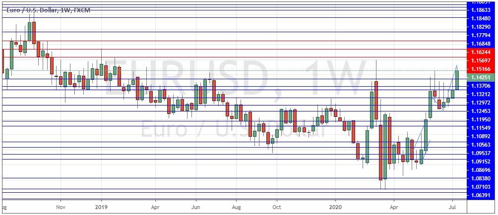 Last week saw this currency pair print a large, bullish candlestick which closed above 1.1400. This was the highest weekly close made here since January 2019. There is a long-term bullish trend and a weak Dollar, with the Euro being boosted by the ECB last week.